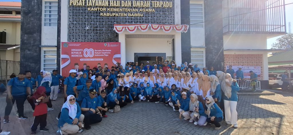 Barru, 15 Agustus 2025 – Dalam rangka menyemarakkan peringatan Hari Ulang Tahun ke-80 Republik Indonesia, Kantor Kementerian Agama Kabupaten Barru bersama Forum Kerukunan Umat Beragama (FKUB) Barru menggelar Gerak Jalan dan Senam Kerukunan Umat Beragama Tingkat Kabupaten Barru, Jumat (15/8). Kegiatan ini diawali dengan pelepasan peserta gerak jalan oleh Kepala Kantor Kemenag Barru, Dr. H.