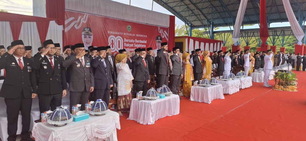 Barru, 17 Agustus 2025 – Suasana Lapangan Sepak Bola Sumpang Binangae, Minggu pagi (17/8), dipenuhi rasa haru dan khidmat saat ribuan peserta upacara memperingati Detik-Detik Proklamasi Kemerdekaan Republik Indonesia ke-80. Kepala Kantor Kementerian Agama Kabupaten Barru, Dr. H. Jamaruddin, M.Ag., didampingi Kasi PAIS, Sudirman Abdullah, S.Pd.I., MA., turut hadir dalam upacara yang dipimpin langsung oleh