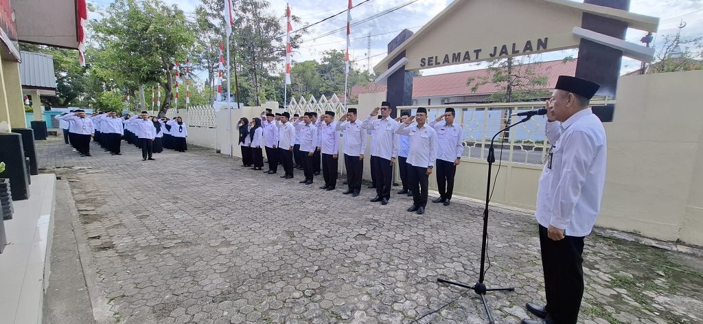 Barru, 25 Agustus 2025 — Kementerian Agama Kabupaten Barru kembali melaksanakan rutinitas Apel Pagi pada Senin (25/08/2025), bertempat di halaman Kantor Kemenag Barru. Apel dipimpin oleh Kasubag TU Kemenag Kab. Barru, H. Husni Abbas, S.Ag., MA., selaku Pembina Apel, dengan Syarifuddin, S.Ag. bertindak sebagai Pemimpin Apel. Kegiatan apel diikuti oleh para Kepala Seksi, Ketua Pokjawas