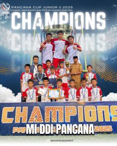 Pancana, 17 Juli 2025 — Prestasi membanggakan kembali ditorehkan oleh Madrasah Ibtidaiyah (MI) DDI Pancana dalam ajang olahraga bergengsi tingkat kecamatan. Dalam Turnamen Pancana CUP Junior II 2025 yang digelar di Lapangan Mini Desa Pancana, tim sepak bola MI DDI Pancana berhasil keluar sebagai juara 1, mengalahkan lawan-lawannya dari berbagai sekolah dasar dan Madrasah Ibtidaiyah di Kecamatan Tanete Rilau, MI DDI Pancana berhasil mempertahankan gelarnya setelah sebelumnya di Pancana CUP Junior I tahun 2024 juga keluar sebagai juara.