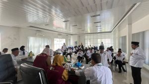 Barru, 25 Agustus 2025 — Pemeriksaan kesehatan gratis digelar di Kemenag Kab. Barru. Kegiatan yang merupakan bagian dari Program Nasional Pemeriksaan Kesehatan Gratis (PKG) dapat diikuti oleh seluruh pegawai Kemenag Kab. Barru. Pemeriksaan dilaksanakan di Aula PLHUT Kemenag Kab. Barru.